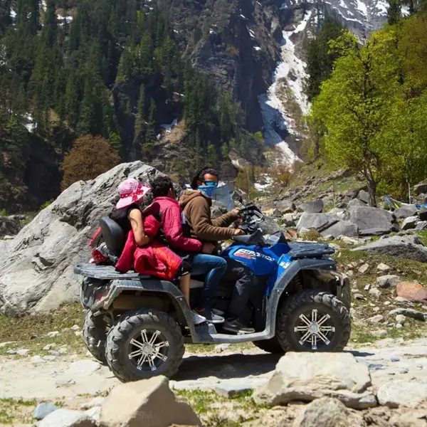 ATV rides add motorised thrill to the mountains. Guests can zoom across rugged trails, meadows, or snowy patches on powerful quad bikes. The ride is short yet exhilarating, with the roar of the engine and wide landscapes all around. Perfect for adventure lovers seeking speed, control, and panoramic valley views of the Himalayas.