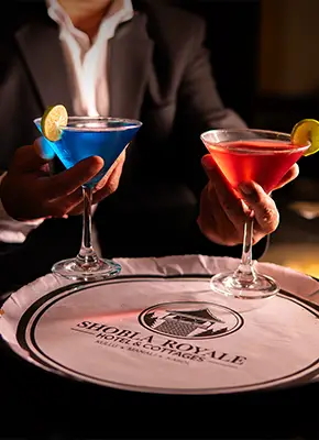 Our bar at Shobla Royale is designed as the perfect evening retreat, where guests can enjoy a curated menu of cocktails, mocktails, wines, and brews, all served with attention to detail. The warm interiors, attentive service and the inviting vibe make it a great place to complement your mood with friends, enjoy a quiet drink, or pair your meal with the right spirit.