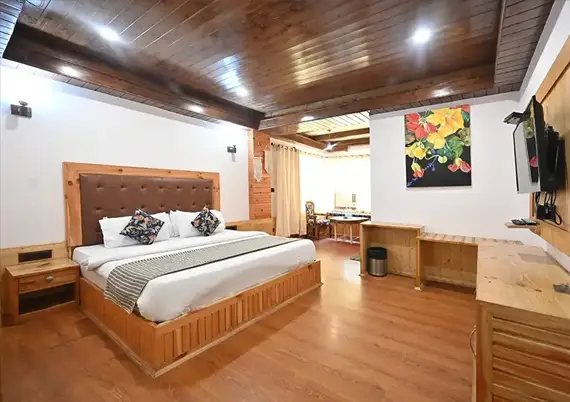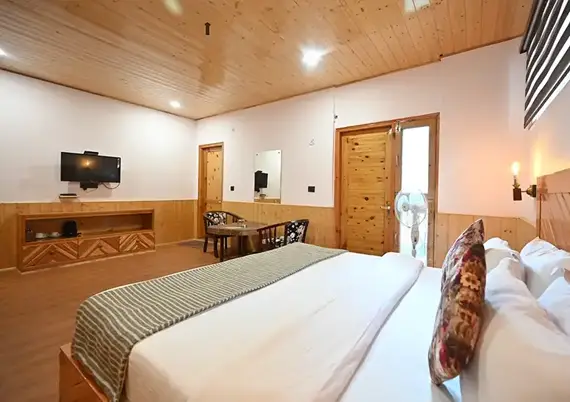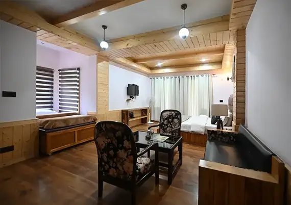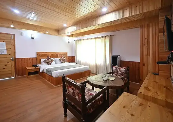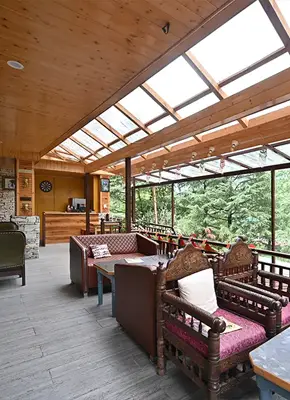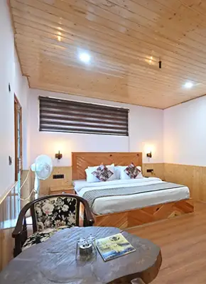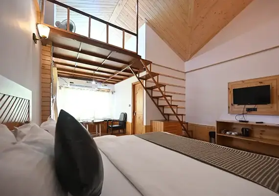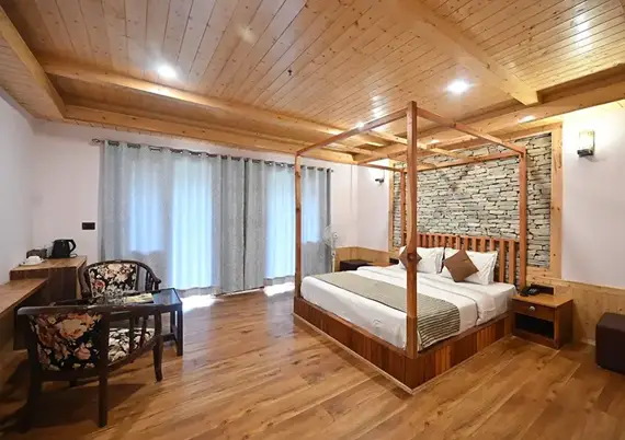 At the Hillside Kasol, stay in thoughtfully designed rooms with balconies, cozy seating, and serene valley or forest views for a peaceful mountain escape.