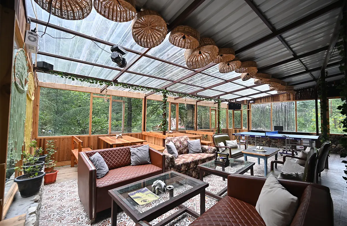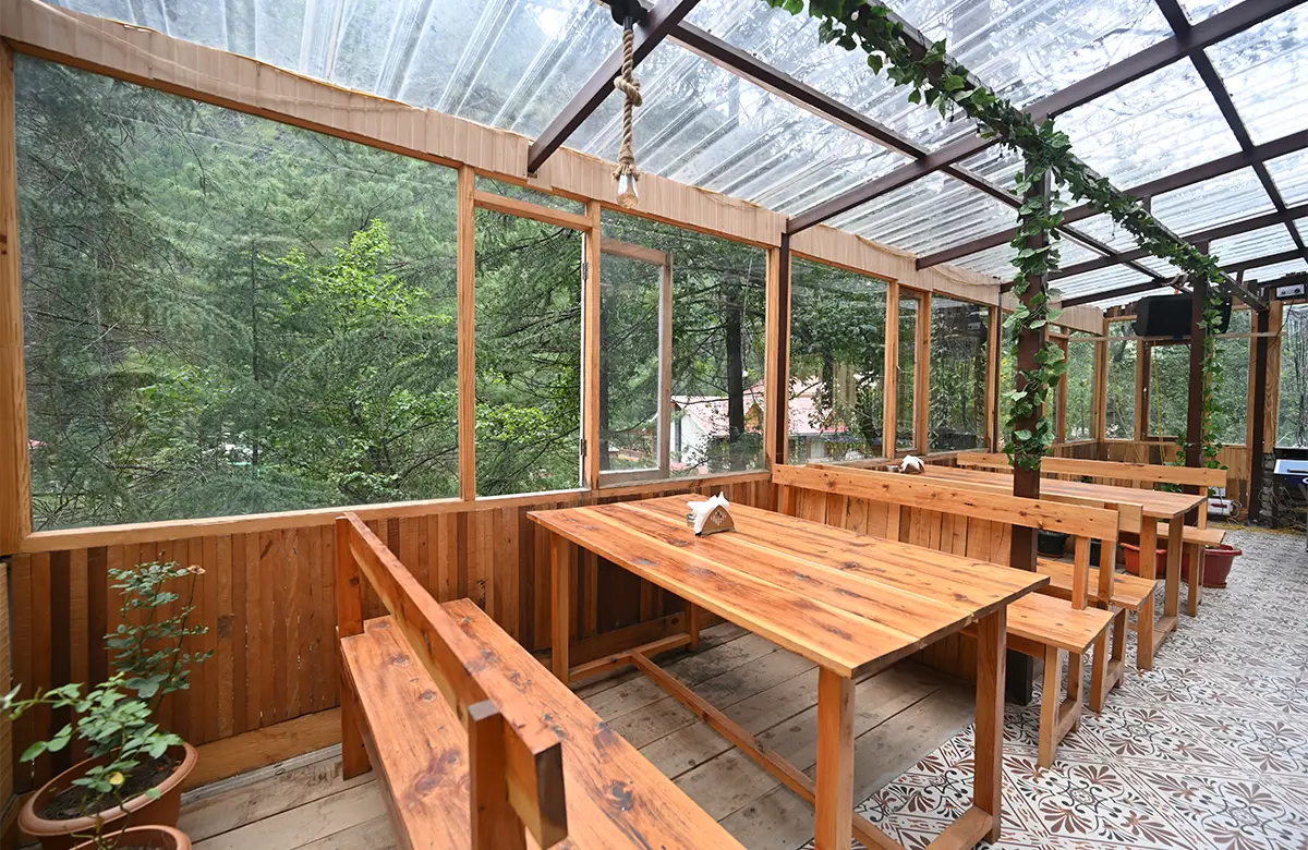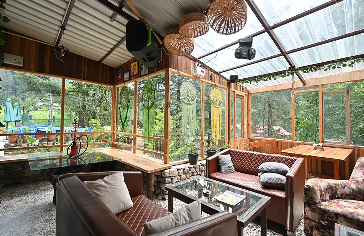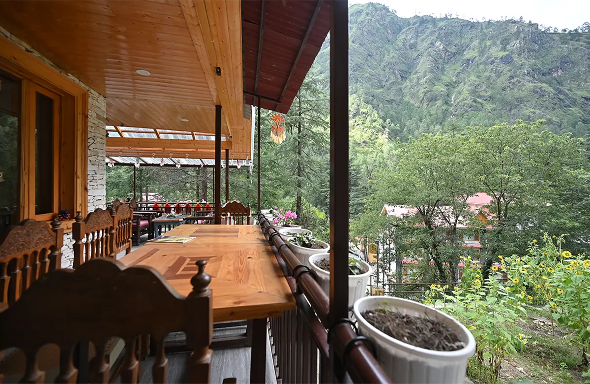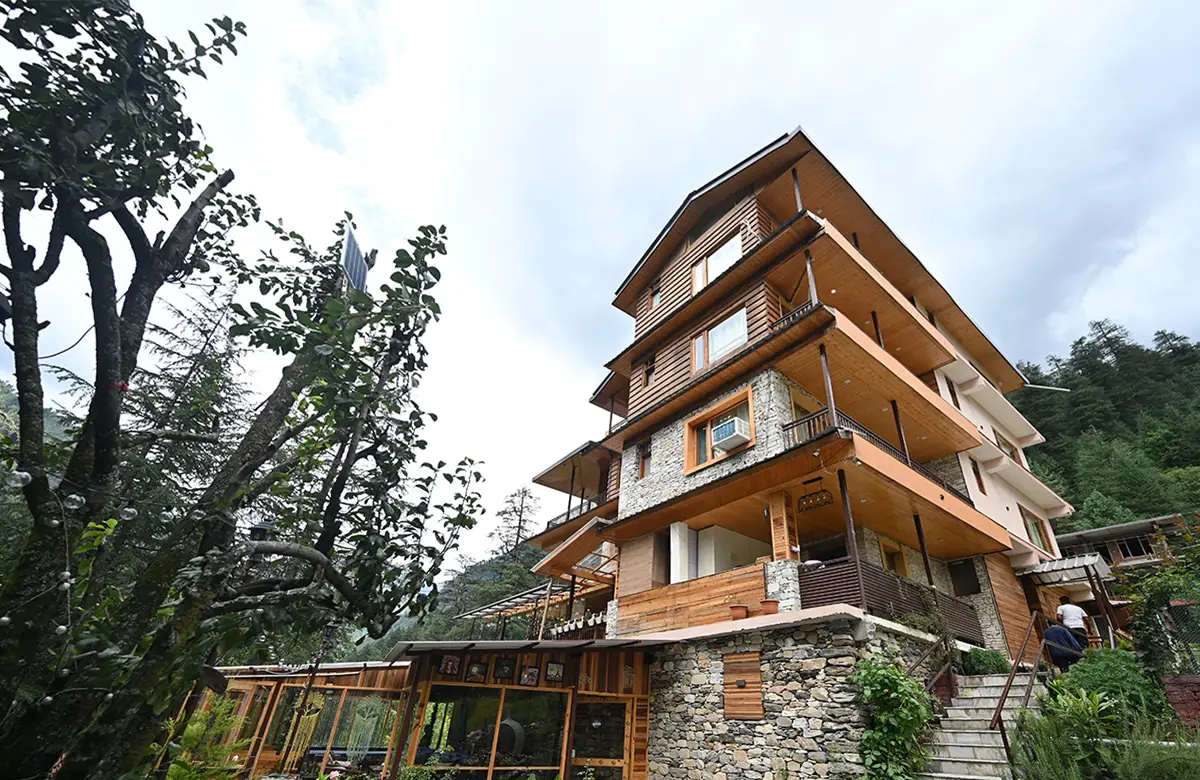 See highlights of The Hillside Kasol — alpine-inspired rooms, garden café, balconies, and tranquil settings nestled in the Parvati Valley.