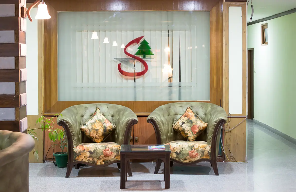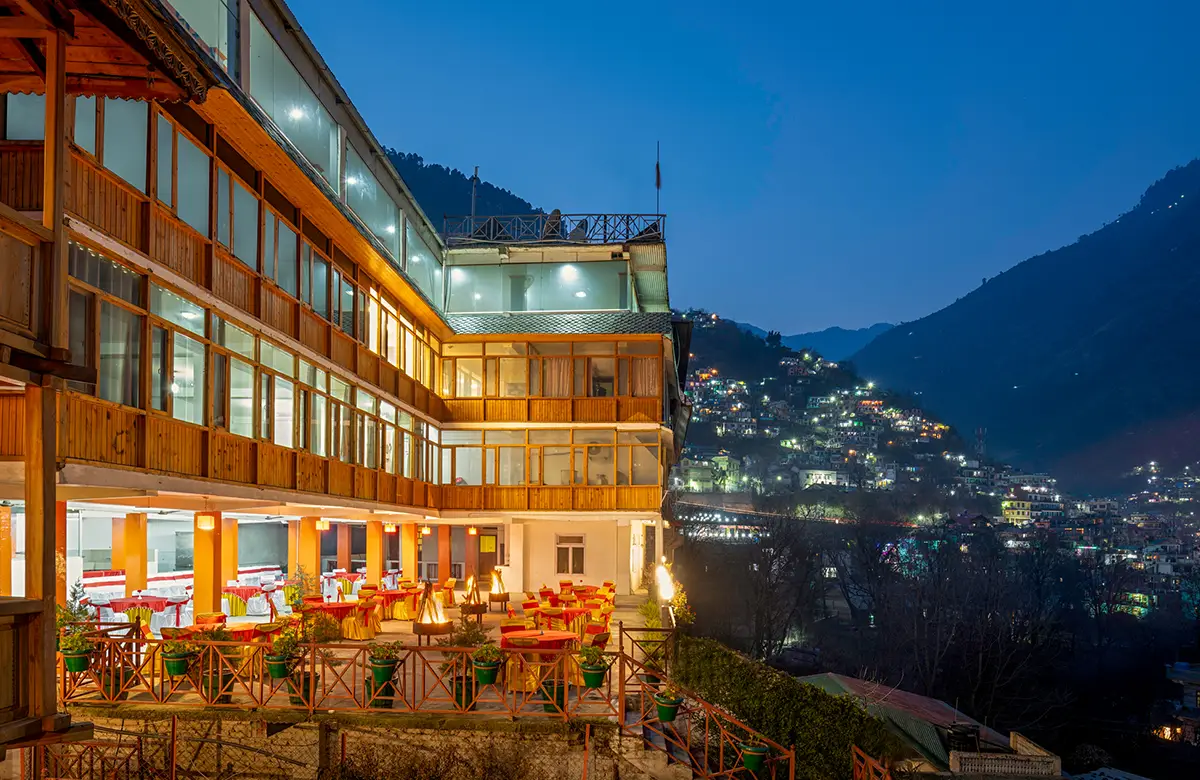 View photos of our boutique hotel in Kullu — elegant wooden rooms, valley views, garden spaces, and warm interiors designed for a cosy stay.